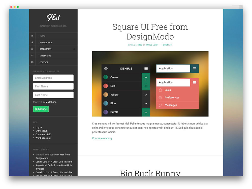 Flat is a free Blog Theme designed by YoArts. Works nice for a personal blog, magazine ,news or review website.