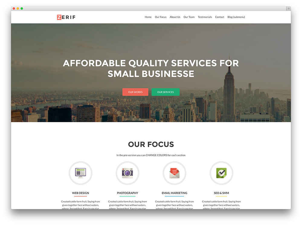 Zerif Lite has an easy to use, yet powerful theme options panel to customize the theme settings completely. Theme structure is carefully built up using clean and validated code so users may find no hassle using the theme. It is a fully responsive theme that adapts well to any type or size of browsing device people may use.